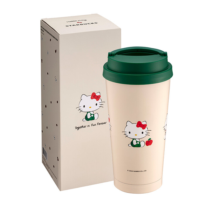 星巴克攜手超人氣品牌三麗鷗深受喜愛的Hello Kitty於去年推出聯名系列商品,備受好評,設計概念以可愛的Hello Kitty誕生50週年的歡慶時刻,她戴著鮮豔的紅色蝴蝶結,穿著星巴克經典的綠色圍裙,以及她可愛的朋友Tiny Chum相伴,整體風格以歡樂相聚「Together in Fun Forever」,展現了友誼的精髓,更添加一絲懷舊和溫暖氛圍,以紀念Hello Kitty豐富的歷史,星巴克再度邀請您沉浸在Hello Kitty的歡樂世界和幸福中。