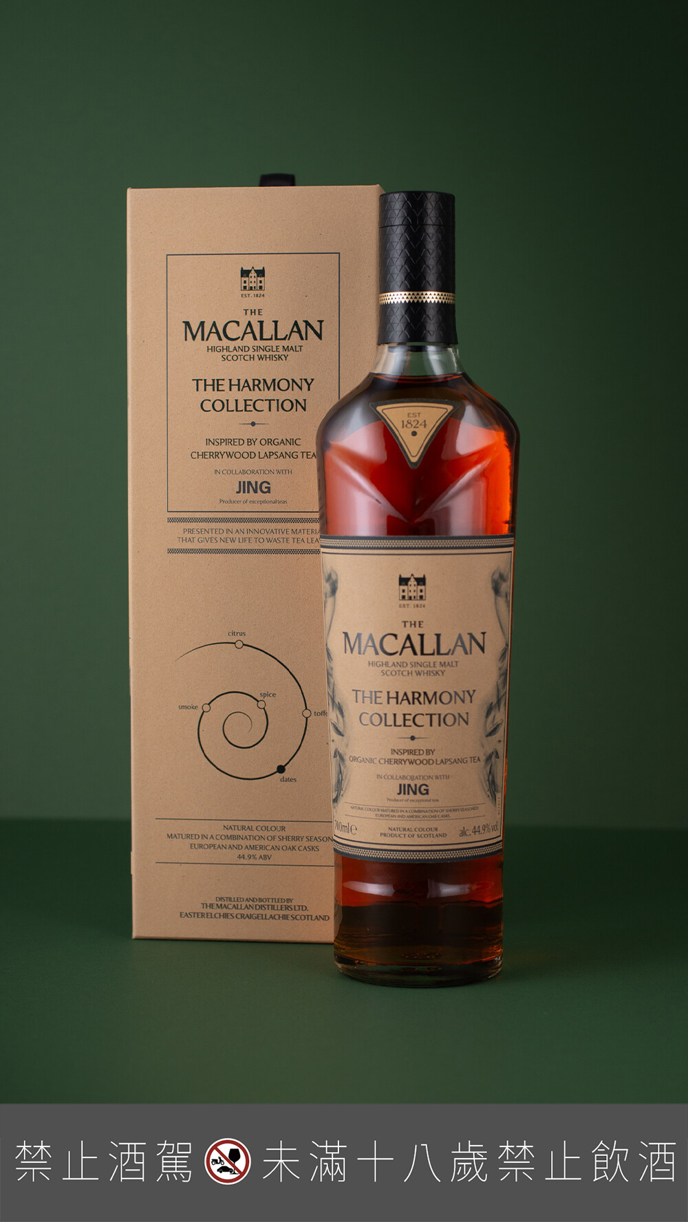 The Harmony Collection 第五版匯聚麥卡倫釀酒大師對風土與品質的堅持,攜手英國頂級茗茶品牌 JING Tea,將茶香的深邃韻味融入雪莉橡木桶的熟成旅程之中,開展出茶與酒交織對話的嶄新風貌。兩大品牌皆以自然為源、以工藝為本、以時間為證,在各自領域的匠藝追求中,共同展現對風味的敬重與探索。