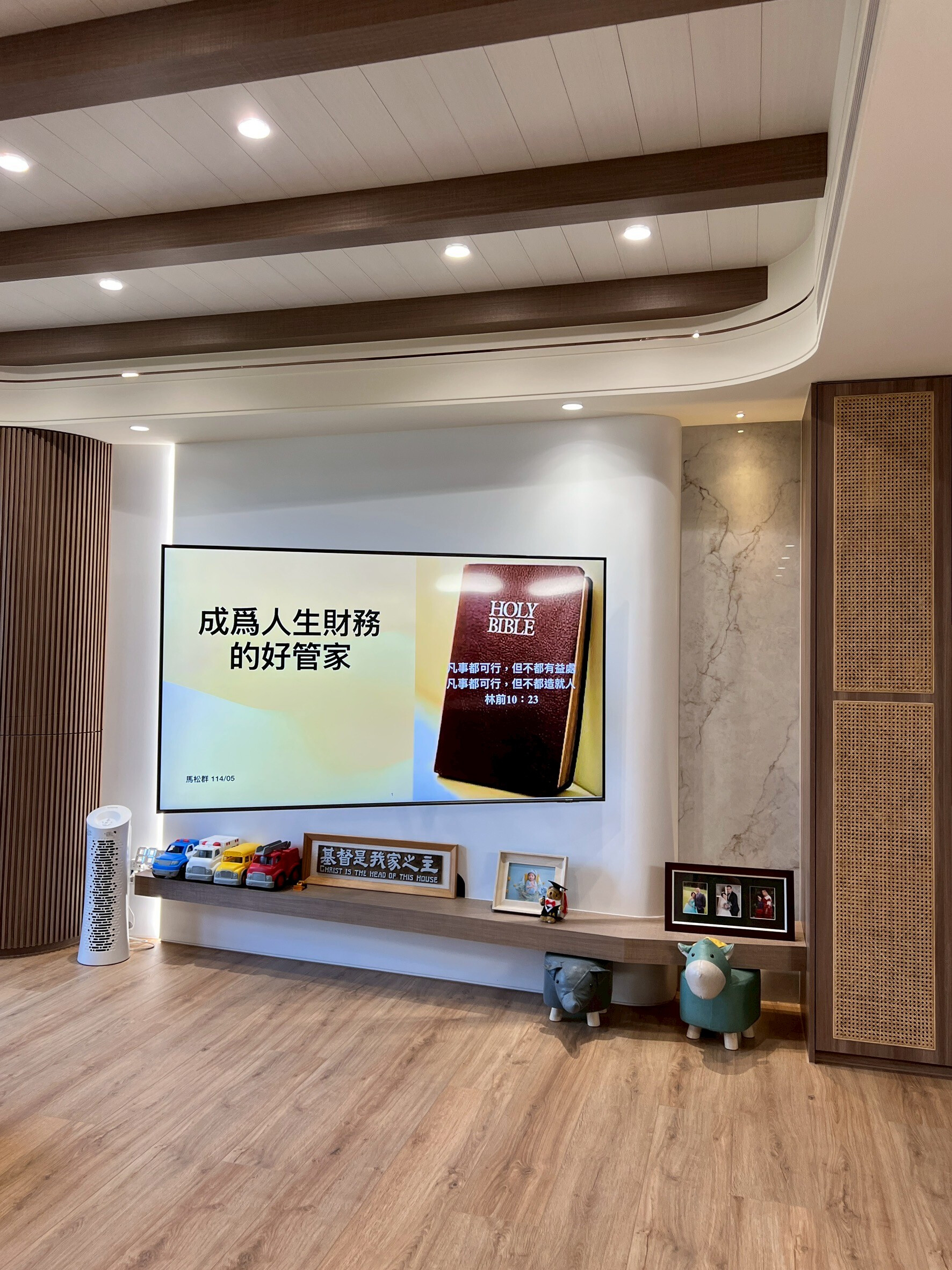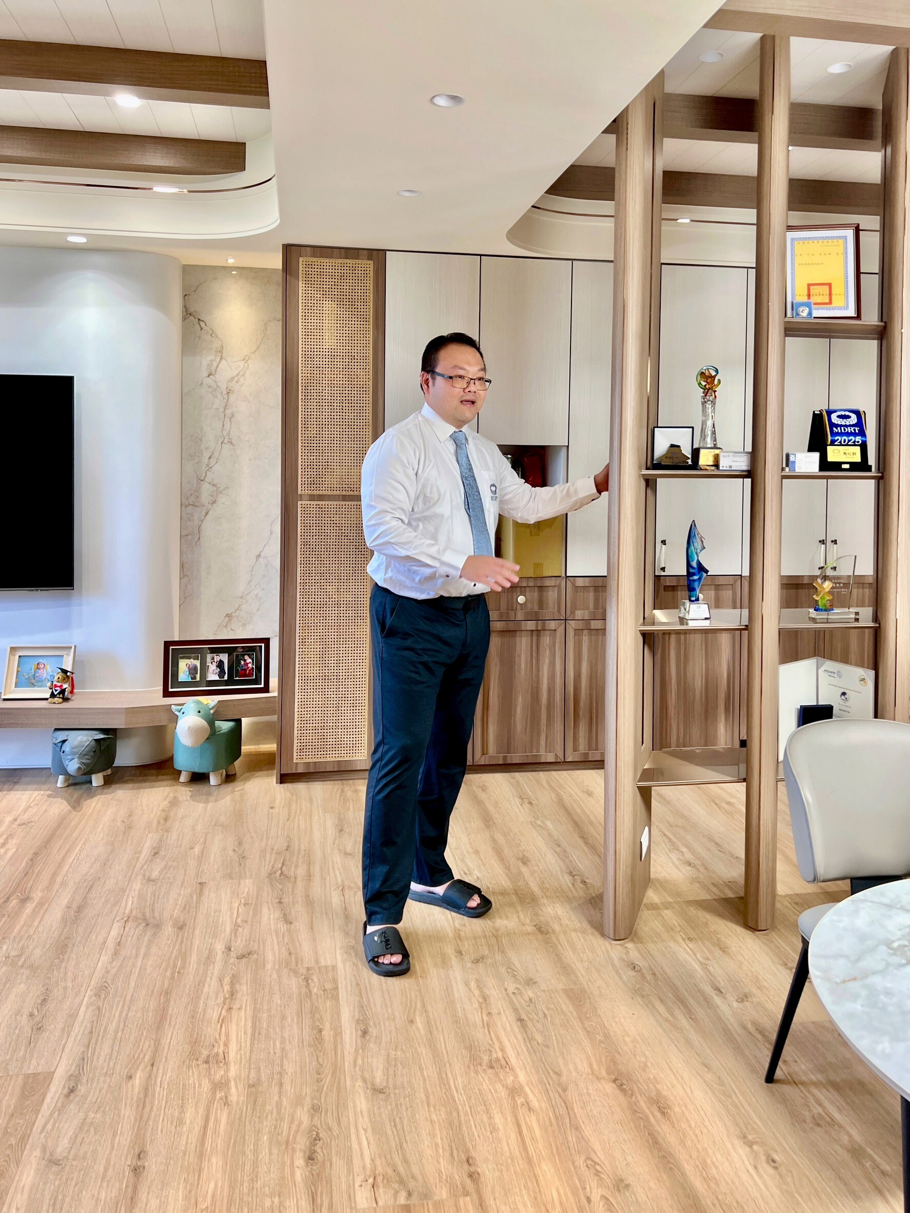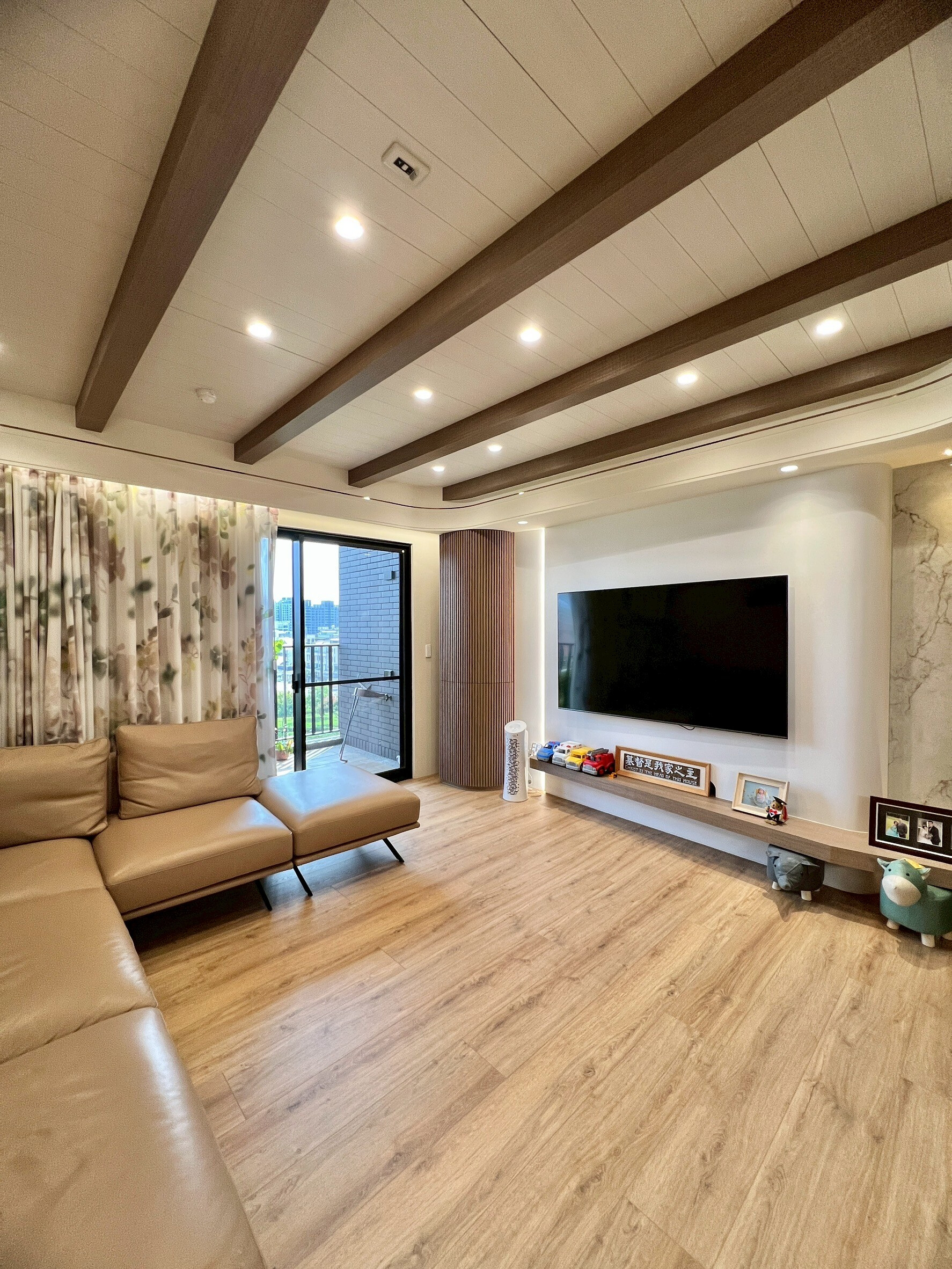 在台中北屯十四期重劃區的綠意之中,這戶位於「陸府織森」的現代人文豪宅,是一對從事保險業的年輕夫妻與兩個孩子的家。