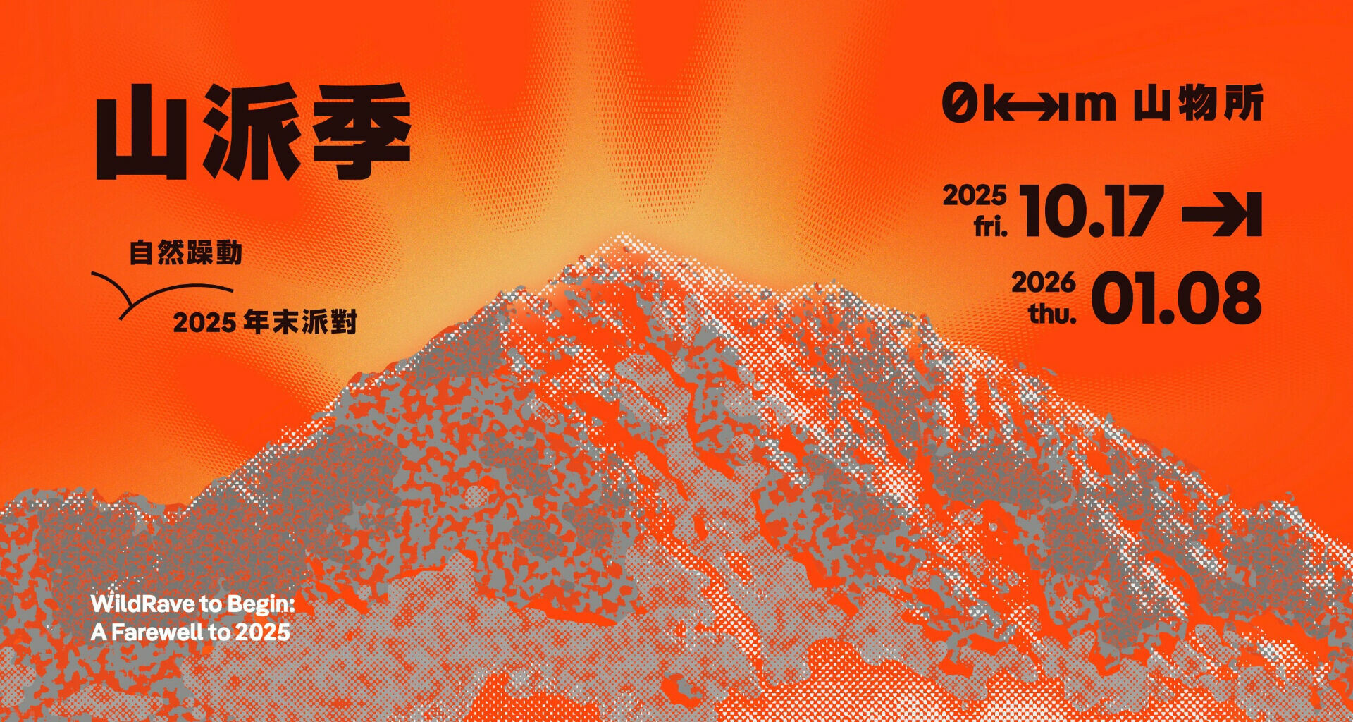 2025 年,0km山物所嘗試透過「季節策展」呈現場域的限定風貌,以自然生活為核心,先後推出「山宴季」、「山沐季」與「山寧季」等主題企劃,持續展現城市與自然交織的多種樣貌。年末之際,於 10 月中推出全新主題 「山派季」(2025/10/17–2026/01/08),以「自然躁動的2025告別派對」為題,融合城市節奏與自然感知,邀請大眾共享歲末團聚氛圍,為新年暖身。