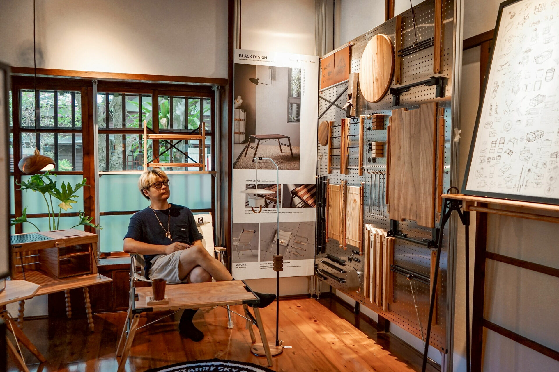 位於E棟《木的N次方》特展第三期職人工作室,BLACK Design首次推出國產木材系列露營桌椅