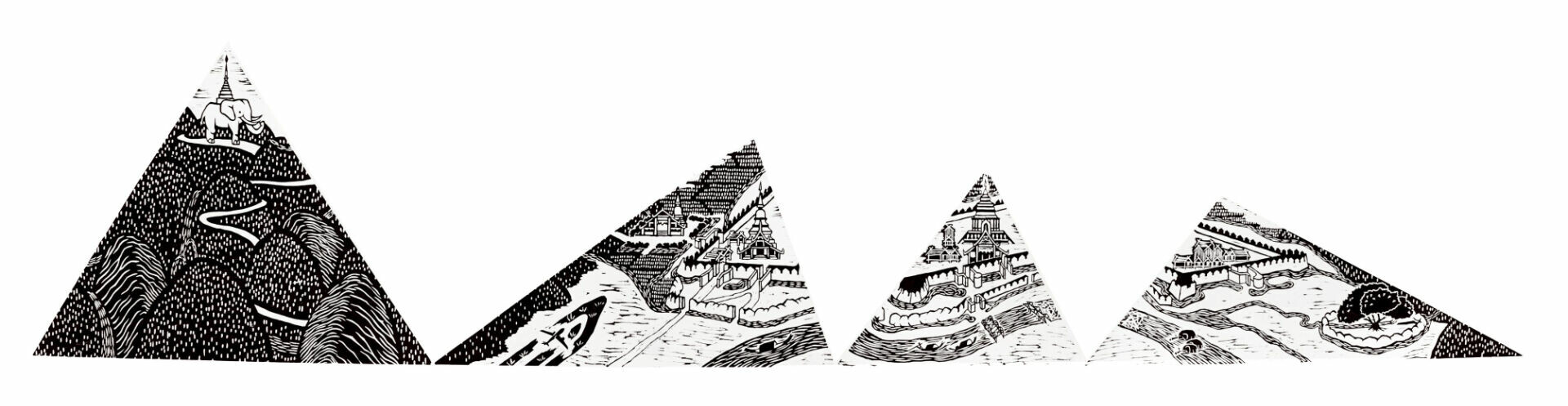 蔡坤霖透過水下錄音記錄了昭披耶河(Chao Phraya River)、平河(Ping River)與清邁大學儲水壩等地的聲音。這些聲音不同於空氣中的振動,無法辨識其具體的來源,而是化為抽象而陌生的節奏。這種「無法辨識」的特質,成為藝術家創作的起點——當聽覺判讀失效時,視覺是否能成為理解世界的另一種方式?