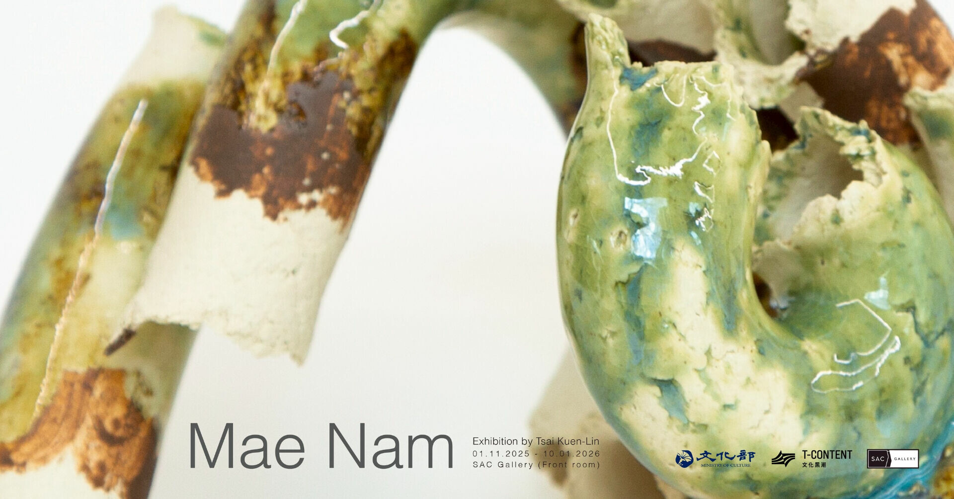 以聲音、自然與形體交織聞名的台灣藝術家蔡坤霖,於 2025 年 11 月 1 日至 2026 年 1 月 10 日,在泰國曼谷重要當代藝術空間 SAC 藝廊推出全新個展《湄南》(Mae Nam)。此展為藝術家多年駐地創作的結晶,延伸自 2023 年發展的《聲譜》(Resonance Relics)系列,融合他在泰國駐留期間的田野觀察與聲響研究,將「水」作為自然、記憶與文化的載體,透過陶藝、繪畫與版畫等形式轉譯為可感受的物質語言。