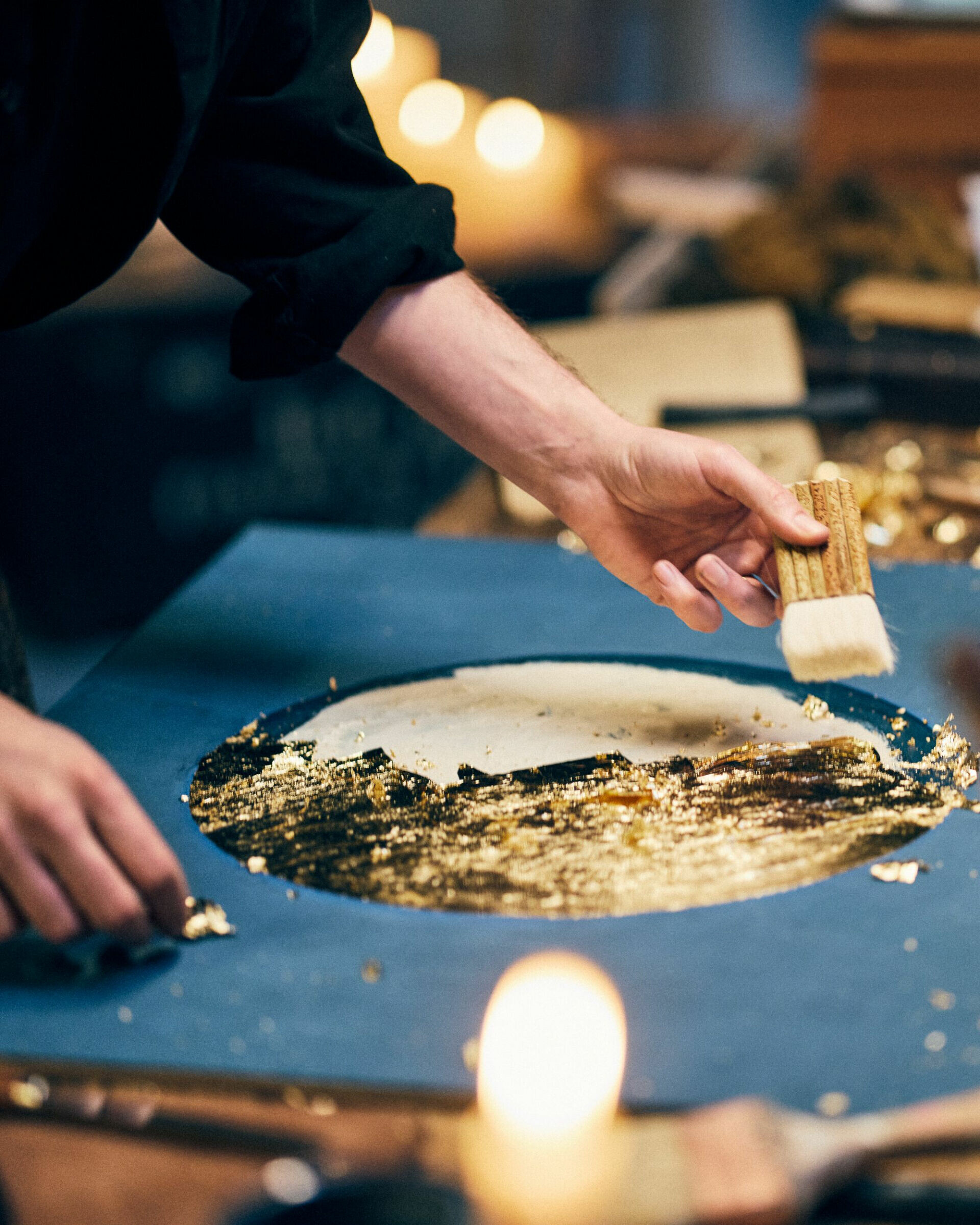 攜手法國藝術家 David Aiu 打造冬日藝術系列《冬至之光》 。自學成材的他,擅長以自然四大元素分別為土、風、水、火為創作靈感,探索生命的矛盾與萬物的循環。David Aiu 的代表作品 Planet Series 以行星象徵生命,並透過木板與金葉呈現自然與宇宙的珍貴。他說:「自然是我創作的根源。我想以金葉重現大自然的美,它不僅是顏色,而是一種金屬,能以不同光線折射生命、希望與光。」這份對自然的敬意,與 Atelier Cologne 「香水藝術,自然匠造」的理念不謀而合。本次系列邀請人們在聖誕假期時放慢步伐,感受自然的律動以及內在的寧靜。