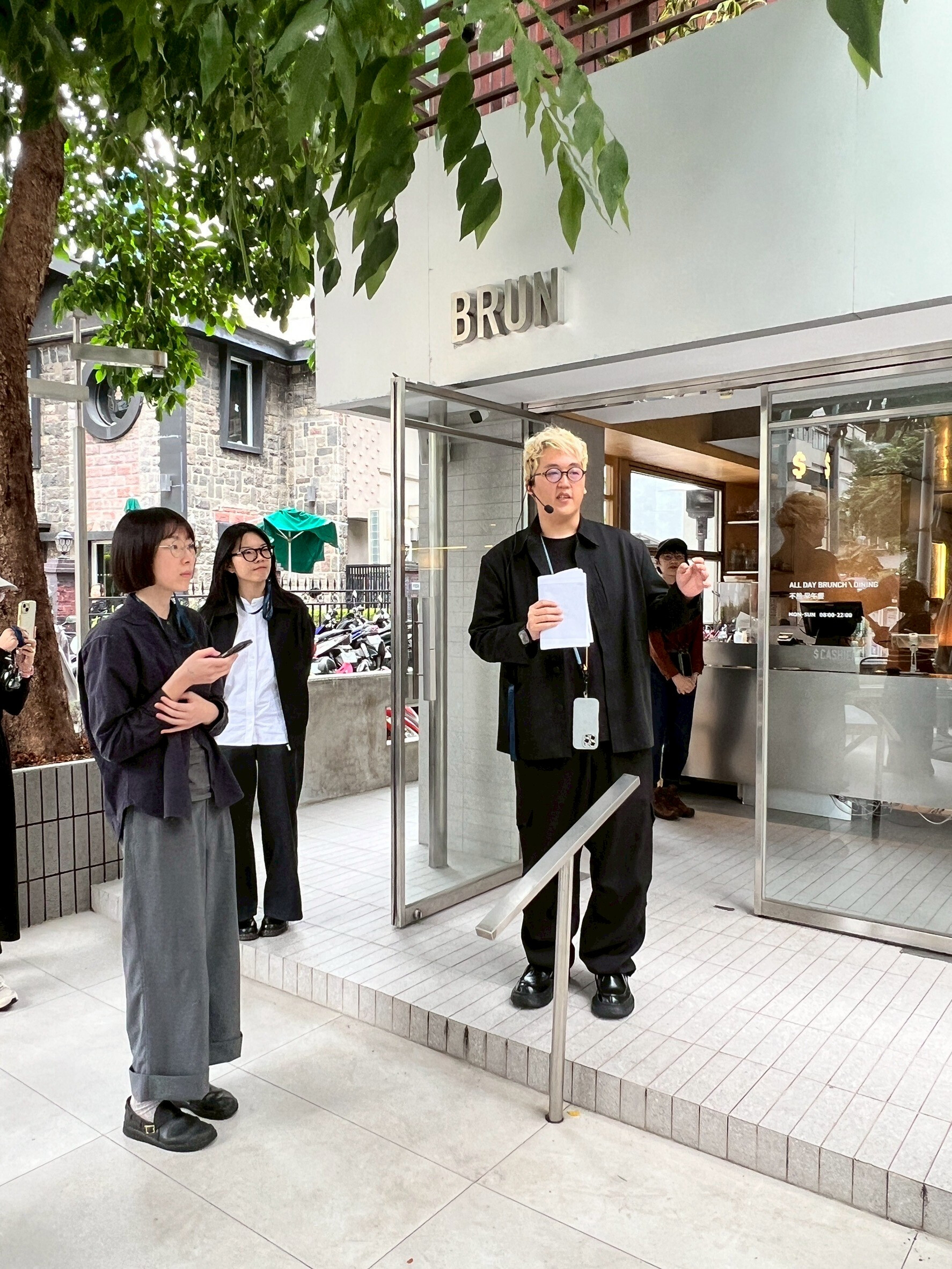 彡苗空間實驗共同創辦人樂美成站在門口,他說,「LET’S BRUN TOGETHER,不是要大家一起吵鬧,而是邀請每個人一起找到自己的步調。」於是我們踏進店內,像踏進了另一種天母的節奏。