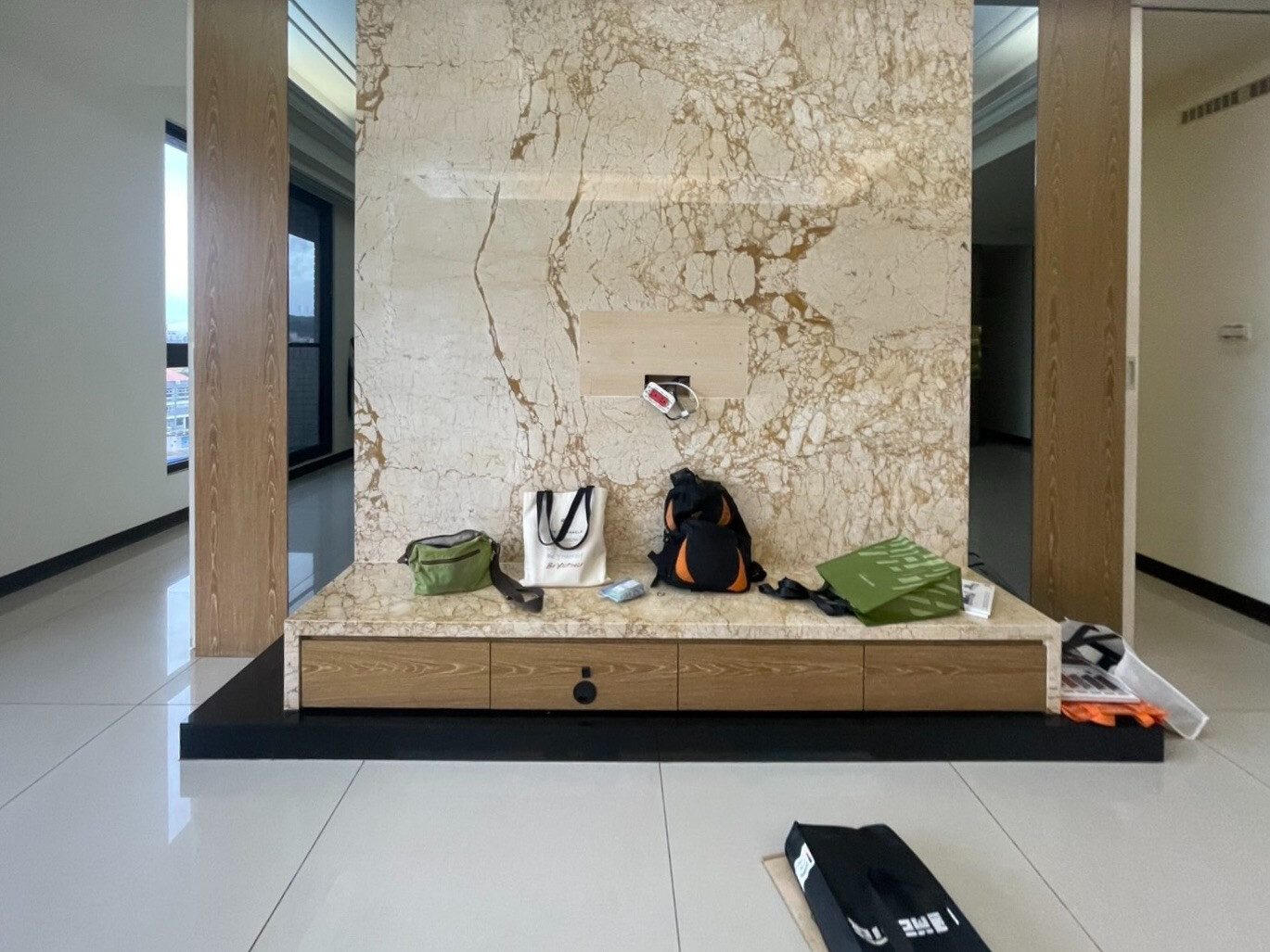 屋主對原本舊家的傳統實木家具有深厚情感,但其風格卻與新空間格格不入。設計師沒有選擇汰換,而是將舊家具重新噴塗為白色,納入整體色彩計畫中,讓回憶得以留下,同時與新空間取得一致語彙。全室鋪設完成德國Meister木地板後,空間正靜待家具與燈具進場:一種介於完成與期待之間的美好狀態。