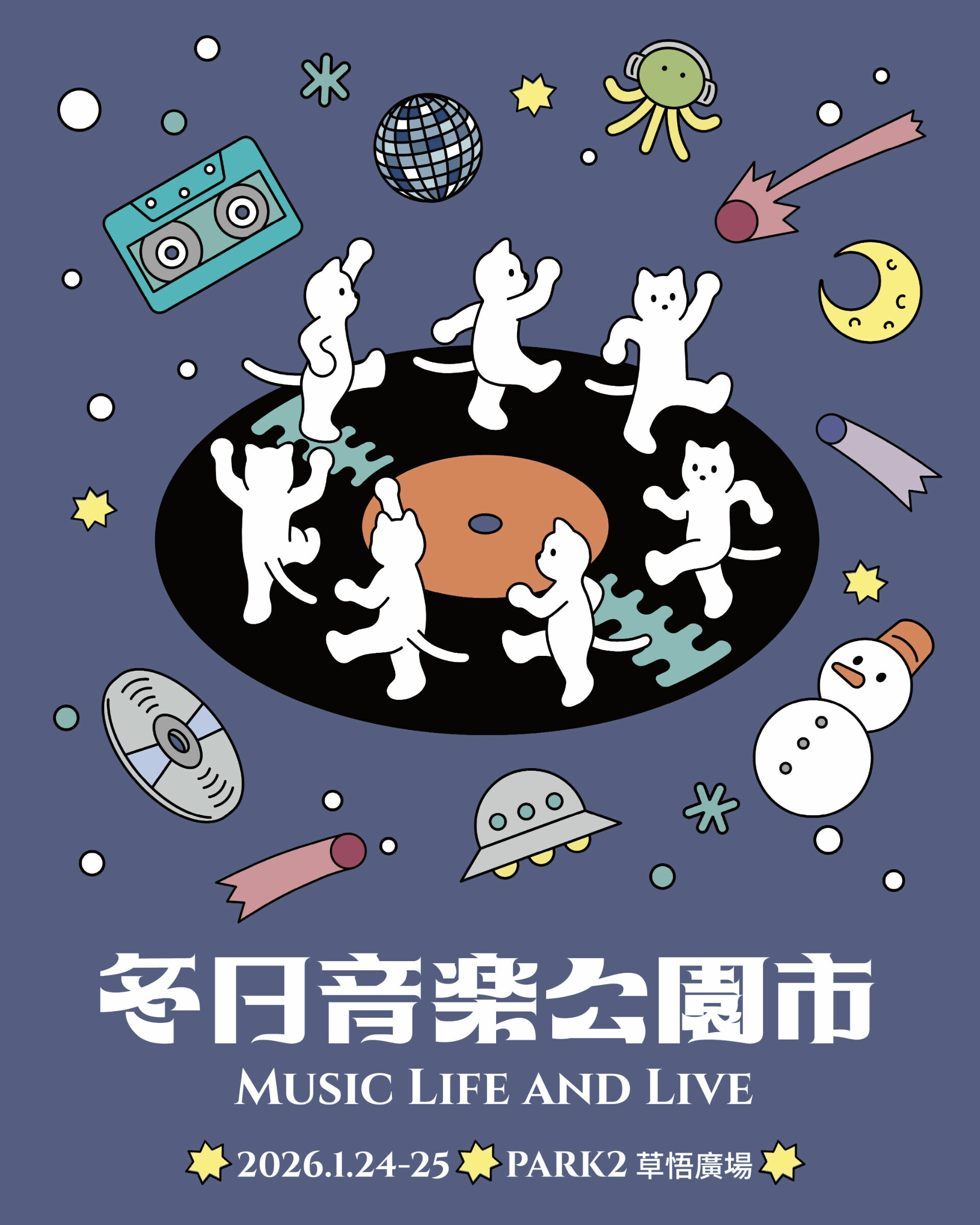 由音樂與生活美學交織而成的都會風景「冬日音樂公園市」,即將於 2026 年 1 月 24 日至 25 日在台中 PARK2 草悟廣場迎來第三回。作為 2026 年開春全台第一場跨國音樂市集,本次活動邀請日本神戶插畫家 Yosuke Yamauchi 擔綱主視覺設計,以「音樂無重力」為主題,帶領參與者在冬日暖陽中卸下生活重量,進入一場跨越國界的感官飄浮。邀請大家在繁忙的歲末慢下腳步,走入這場由黑膠、插畫與美食構築的冬日慶典。