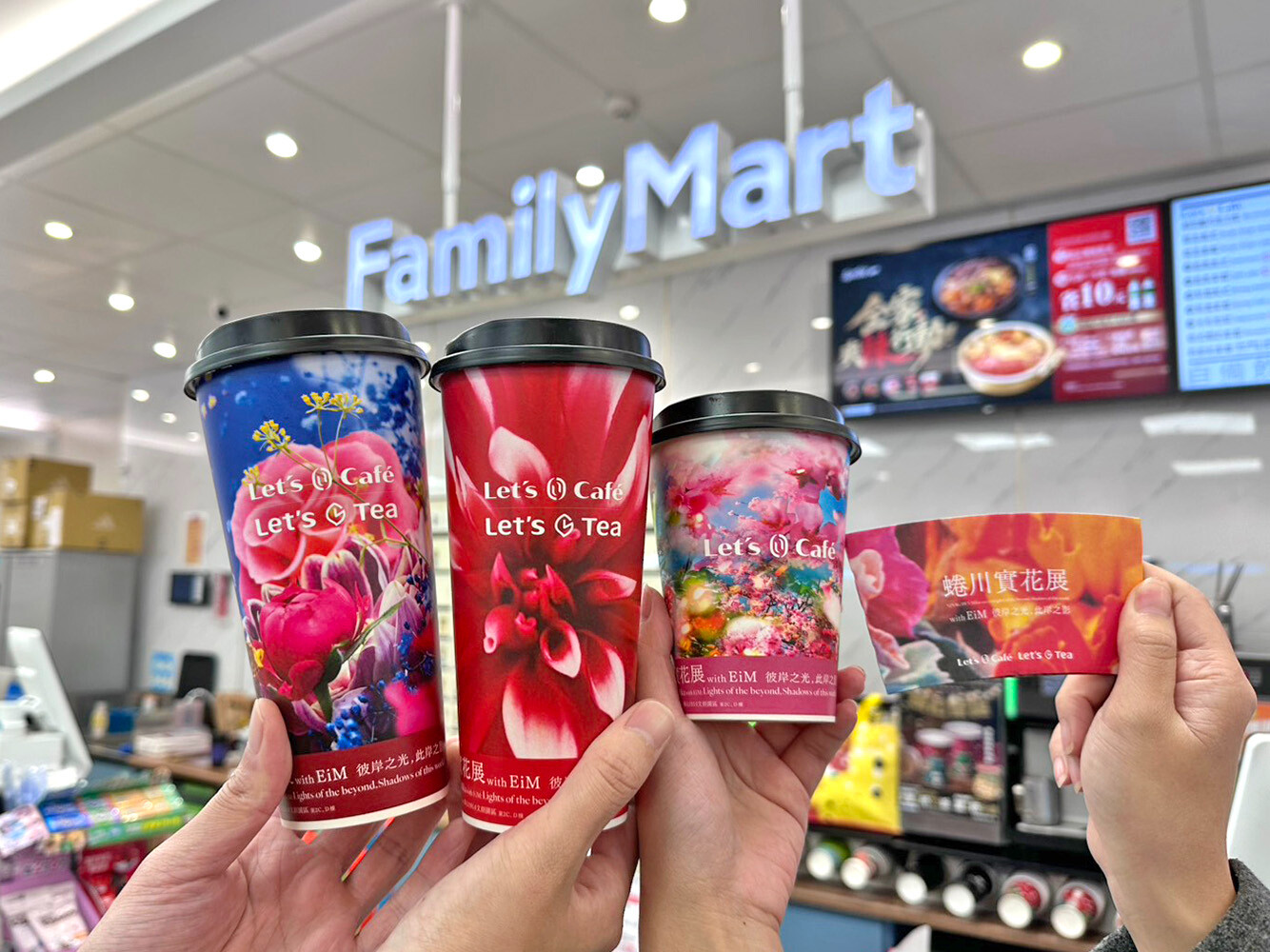 展覽也與全家便利商店Let's Café、Let's Tea攜手推出符合新年氛圍的絕美花影限定杯身及杯套,讓蜷川實花最具標誌性、華麗又鮮豔的花朵作品躍上杯款,並在全台店舖熱銷中,即日起至2月28日持限定合作杯身或杯套至展覽現場票亭購票,還可享450元限定優惠價(原價490元)。