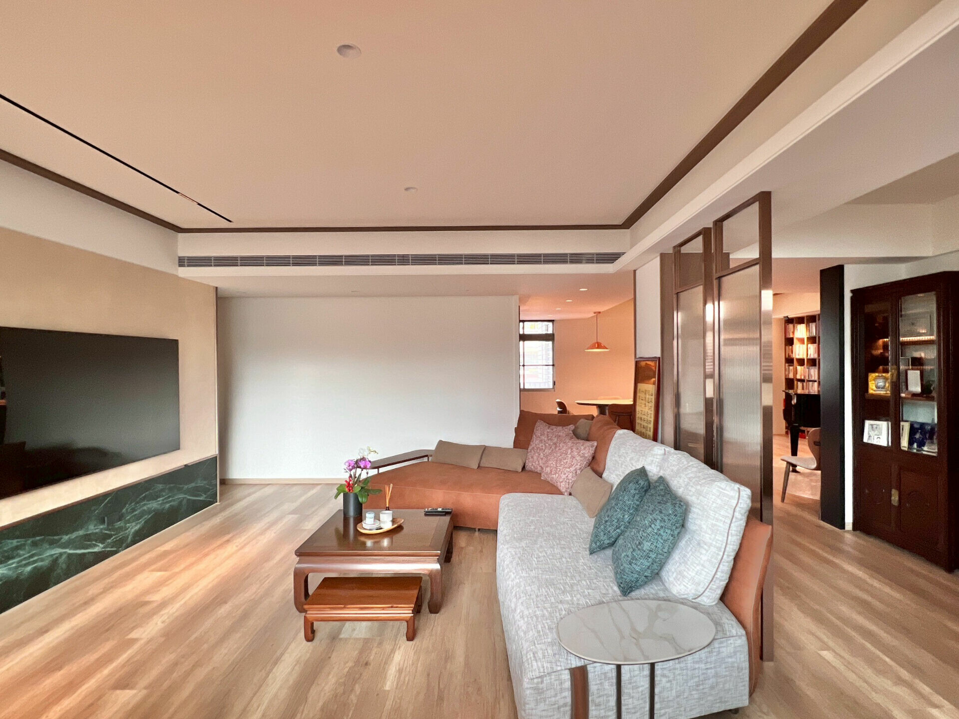 整體空間不刻意追求形式上的「中式風格」,而是從比例、材質與生活節奏出發,讓東方美學自然滲透在日常之中,形塑出耐看、耐住、也耐時間考驗的現代中國風住宅。