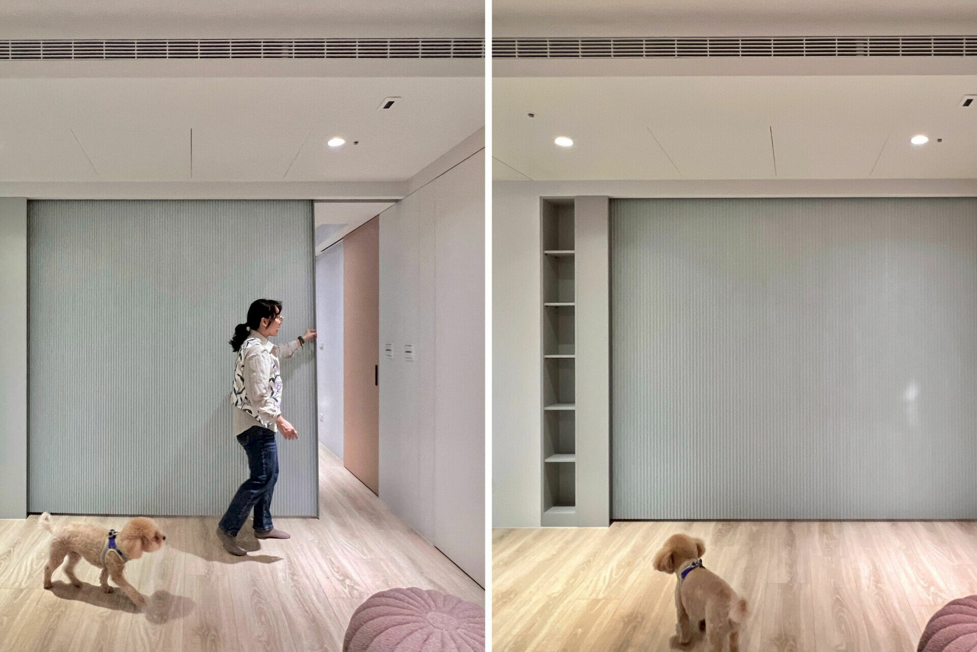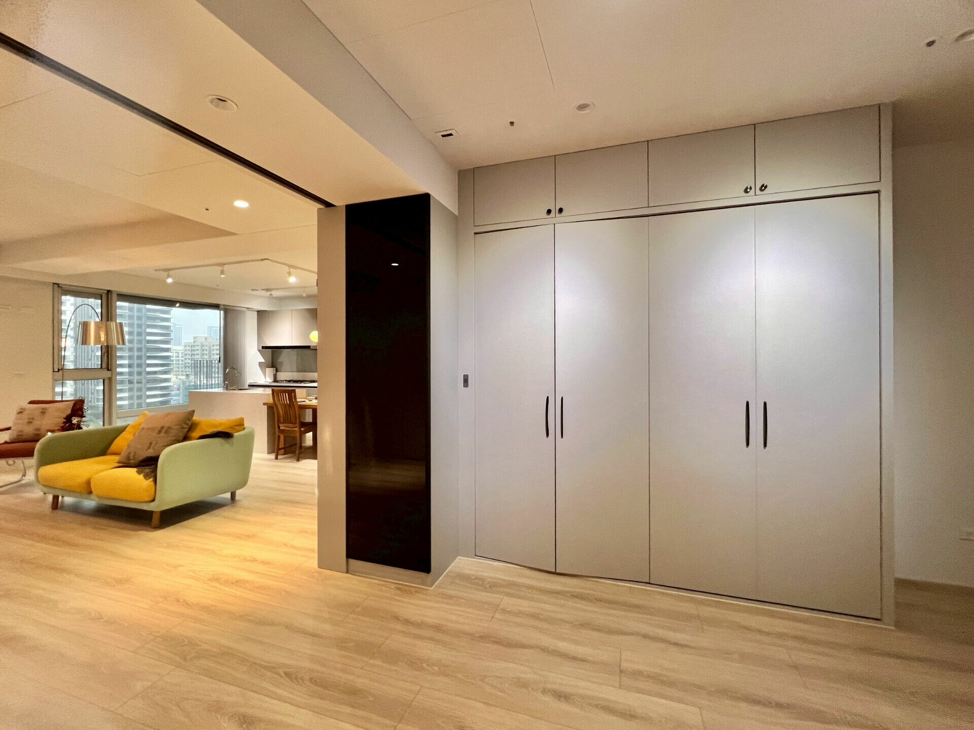 我們將房門與浴室門寬度統一放大至 100 公分,確保未來不論是行動輔具或照護需求,都不需要再二次施工。同時,全室動線都避免不必要的高低差,讓空間本身就具備安全性。
