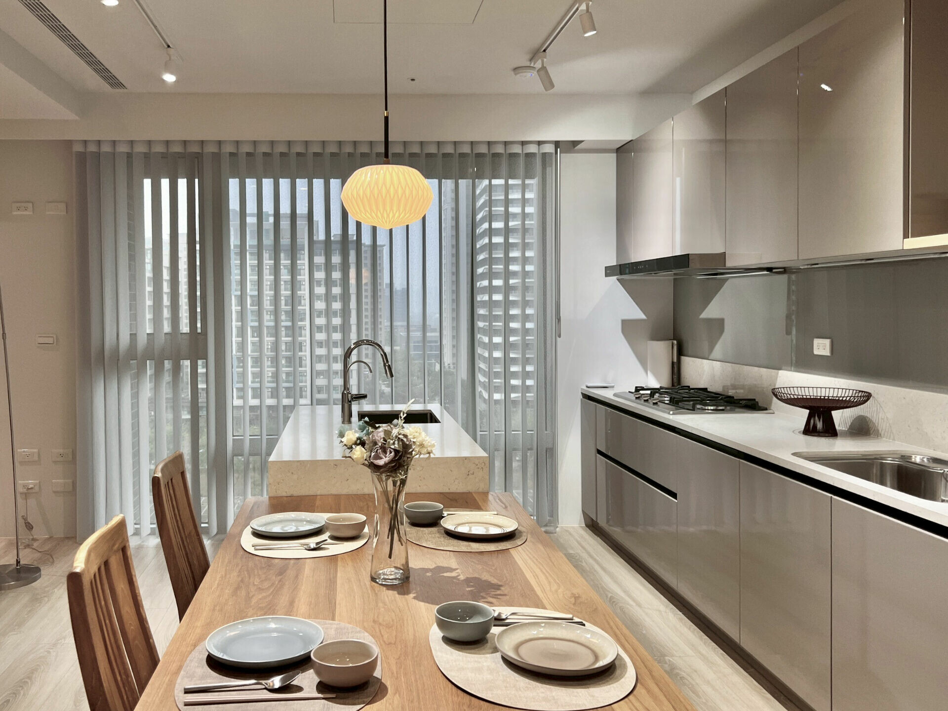「URBAN 15°」立面像樹梢般層層錯落,凹凸之間,讓每一戶都能找到屬於自己的視角。不是面對城市,而是與公園並肩而居。窗外的綠意,不是背景,而是日常的一部分。綾設計的角色,更像是一位翻譯者——把理性的需求,轉譯成可長久使用的空間語言。把預算,用在健康、實用與未來。
