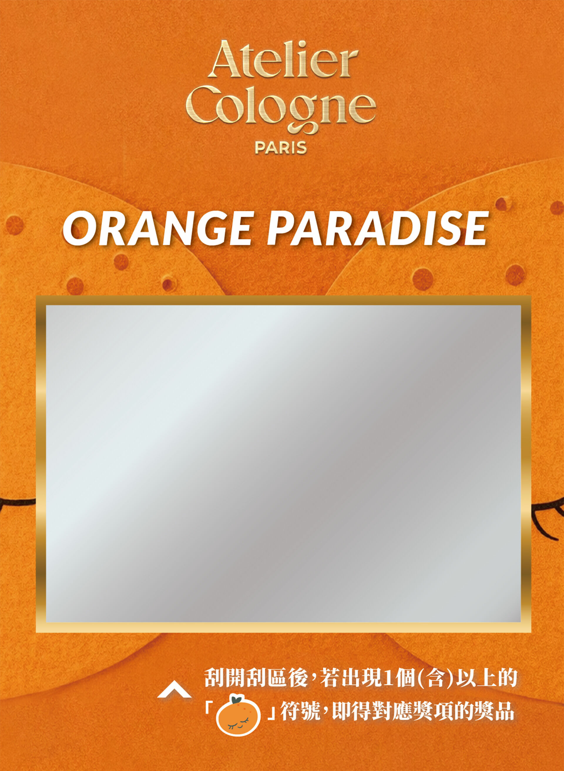 - 凡於門市不限金額消費即贈「Orange Paradise 刮刮卡乙張」及