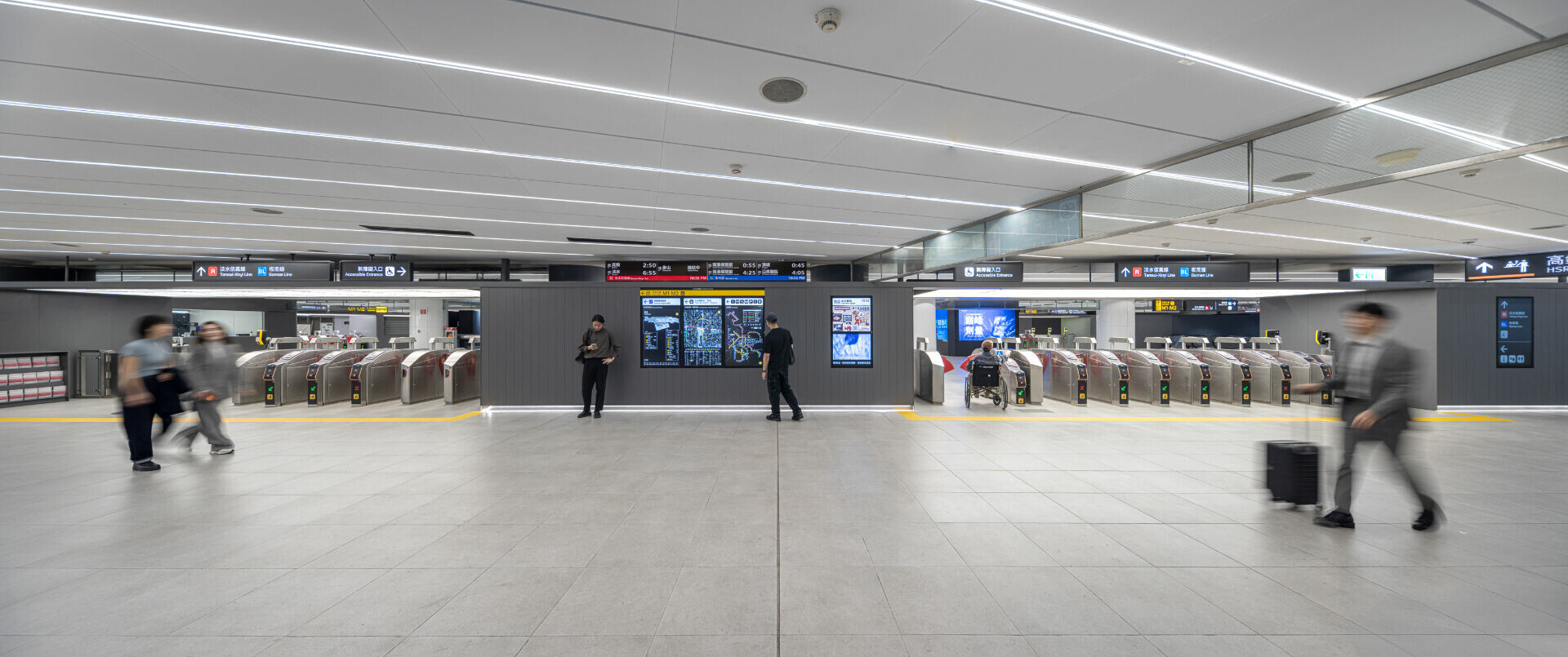西側轉乘區閘門重新調整進出配置,提升通行效率;東側走道則將閘門後移40公尺,整合周邊商業形成具整體性的商業廊帶,讓動線更順暢、體驗更完整。