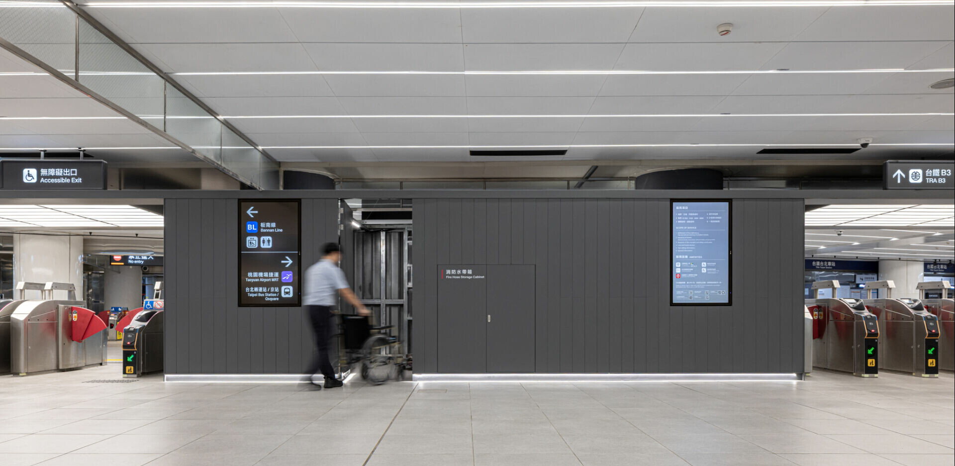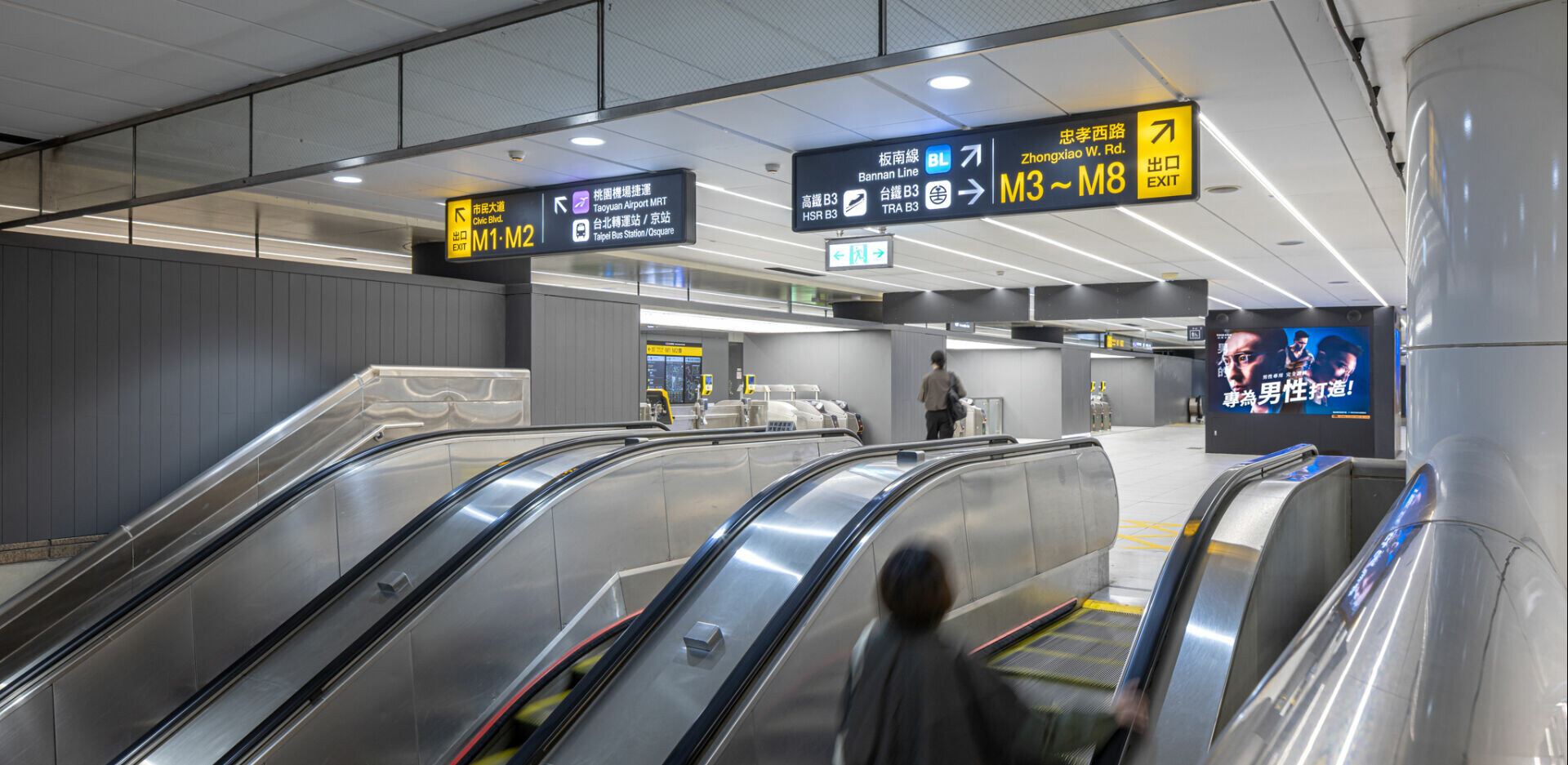 此外,團隊特別調整指標箭頭的方向與設置位置,讓旅客能以最直覺的方式辨識方向、快速尋路。此次導入的指標系統同步採用了台北捷運局於2023年最新頒布的《指標準則》版本,不僅在系統性上全面升級,讓導引更清晰,也導入了通用設計字體(Universal Design Font),進一步提升指標的可讀性與易用性。