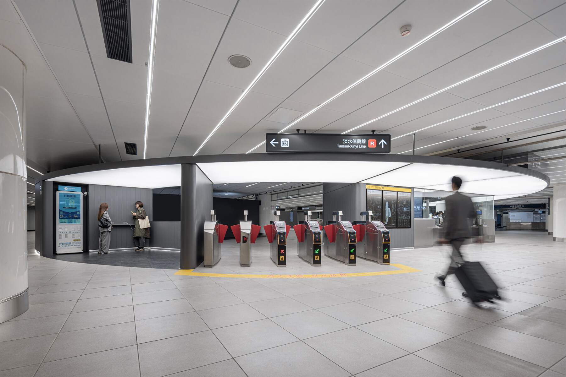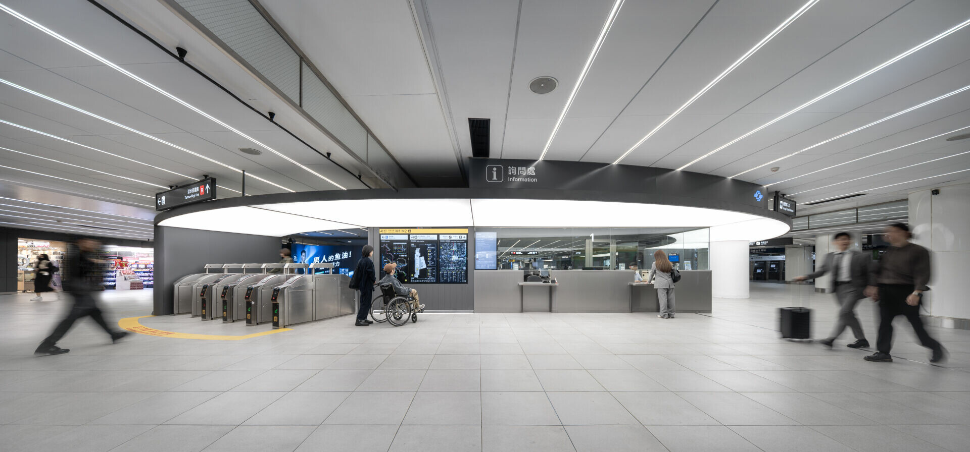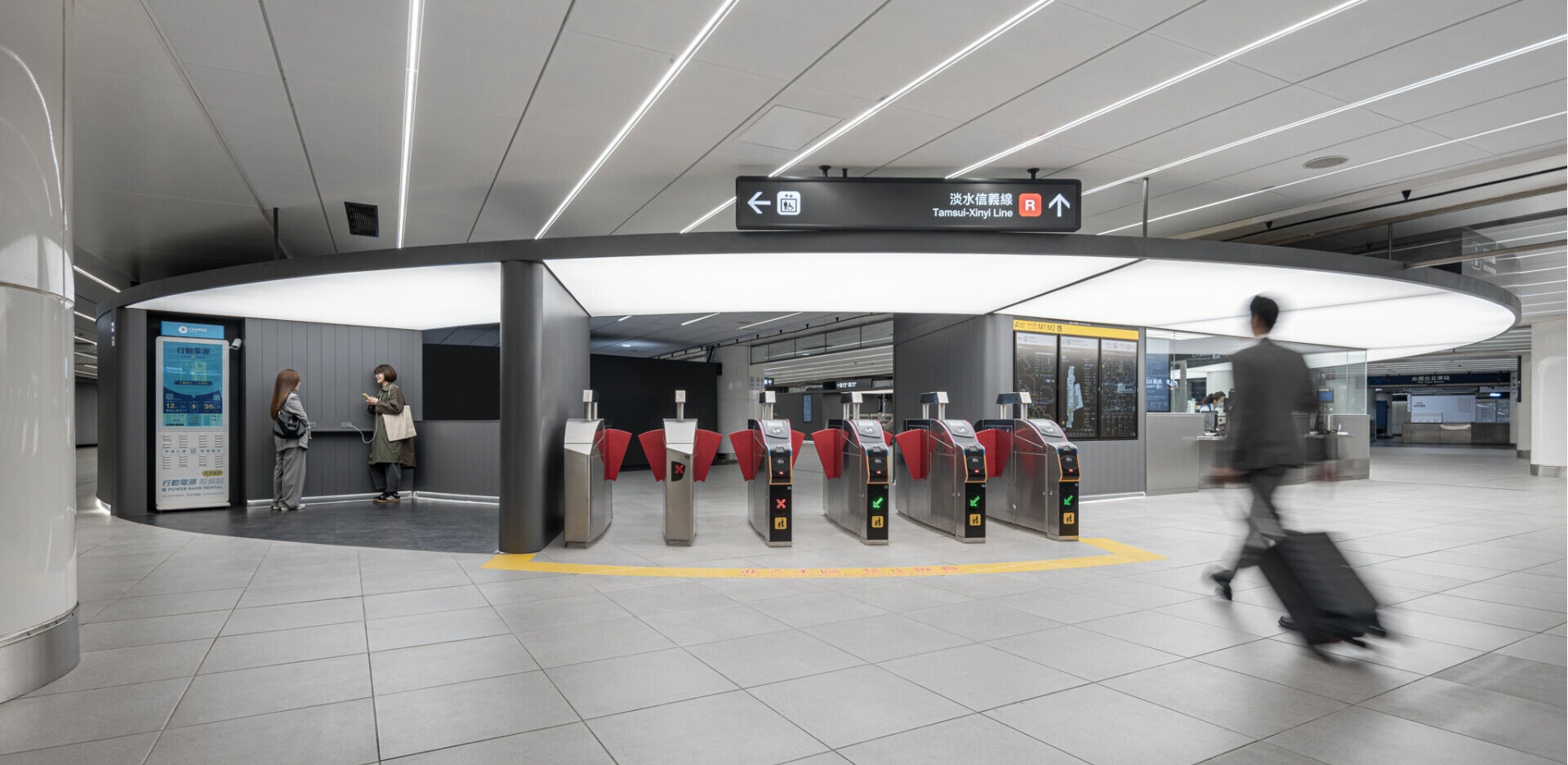 整體照明以溫潤色溫取代冰冷燈光,走道上的線性連續燈帶更形成隱性的導引效果,引導旅客自然前行。地坪採無縫設計,降低行李滾動時的噪音,營造更安靜舒適的乘車環境。