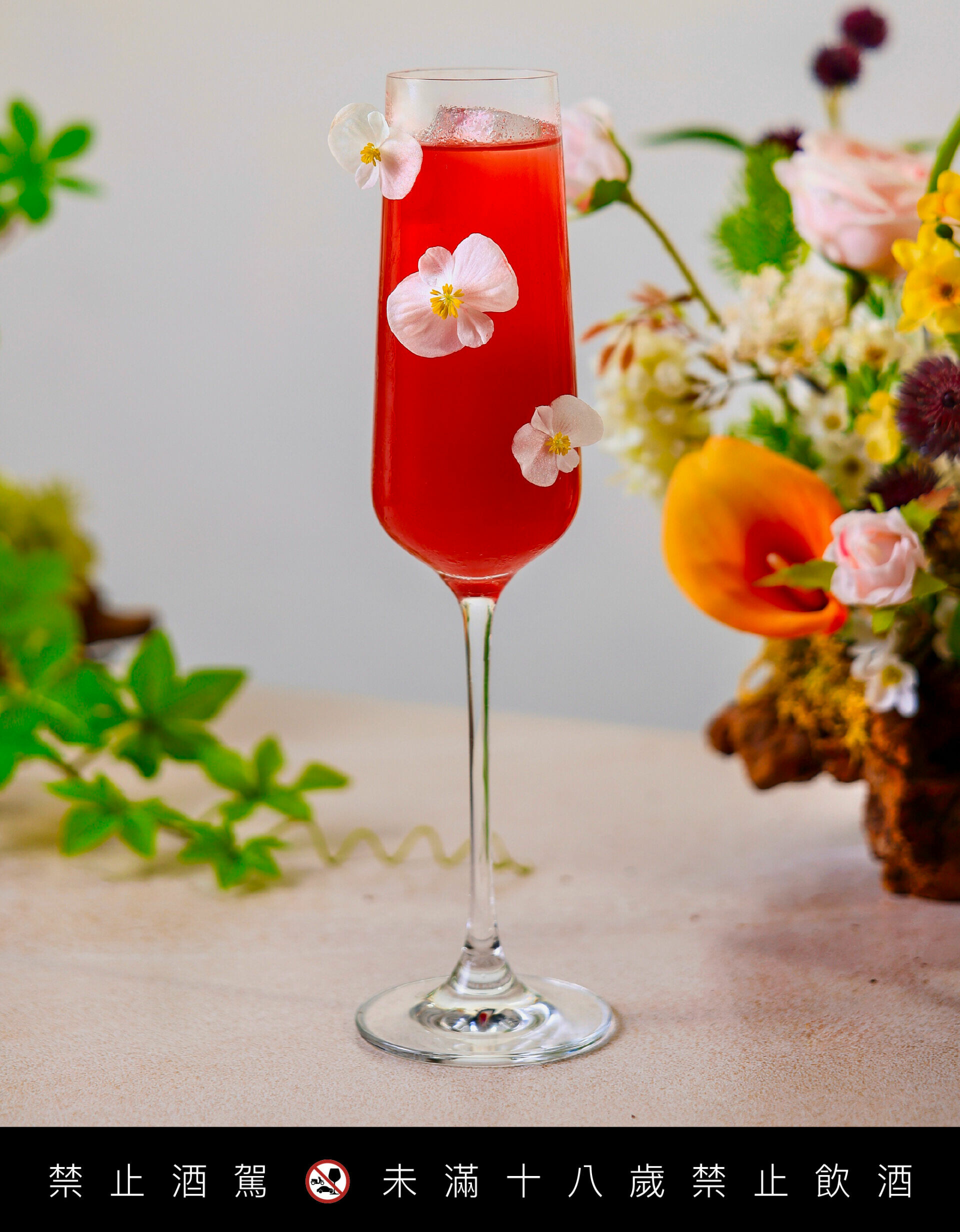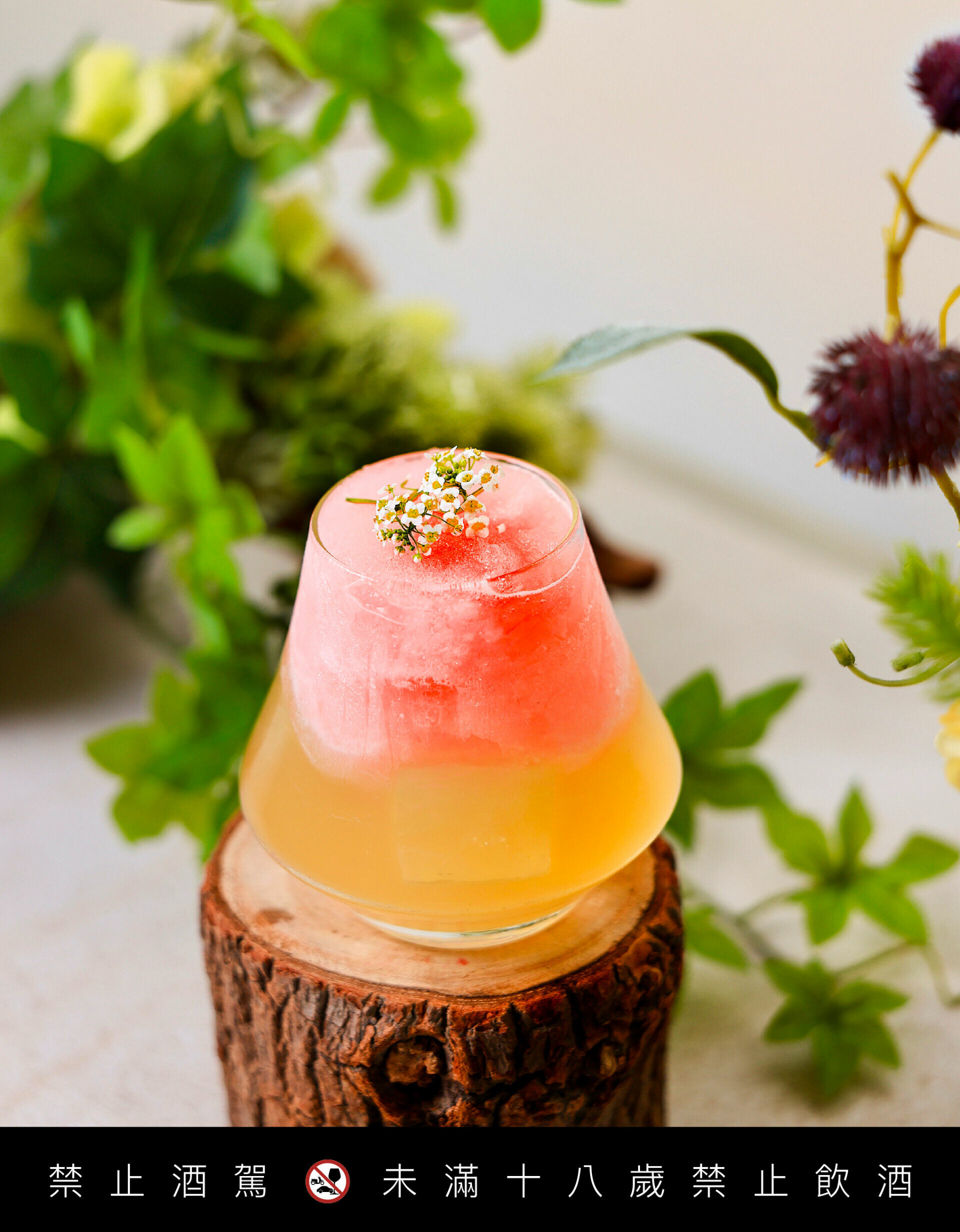 像把春日花園放進杯中:第一眼是漂亮的分層,彷彿春天花朵的渲染,入口嚐到紫蘇香氣,再喝到花香酒體,整杯揮灑出櫻花粉色般的夢幻。