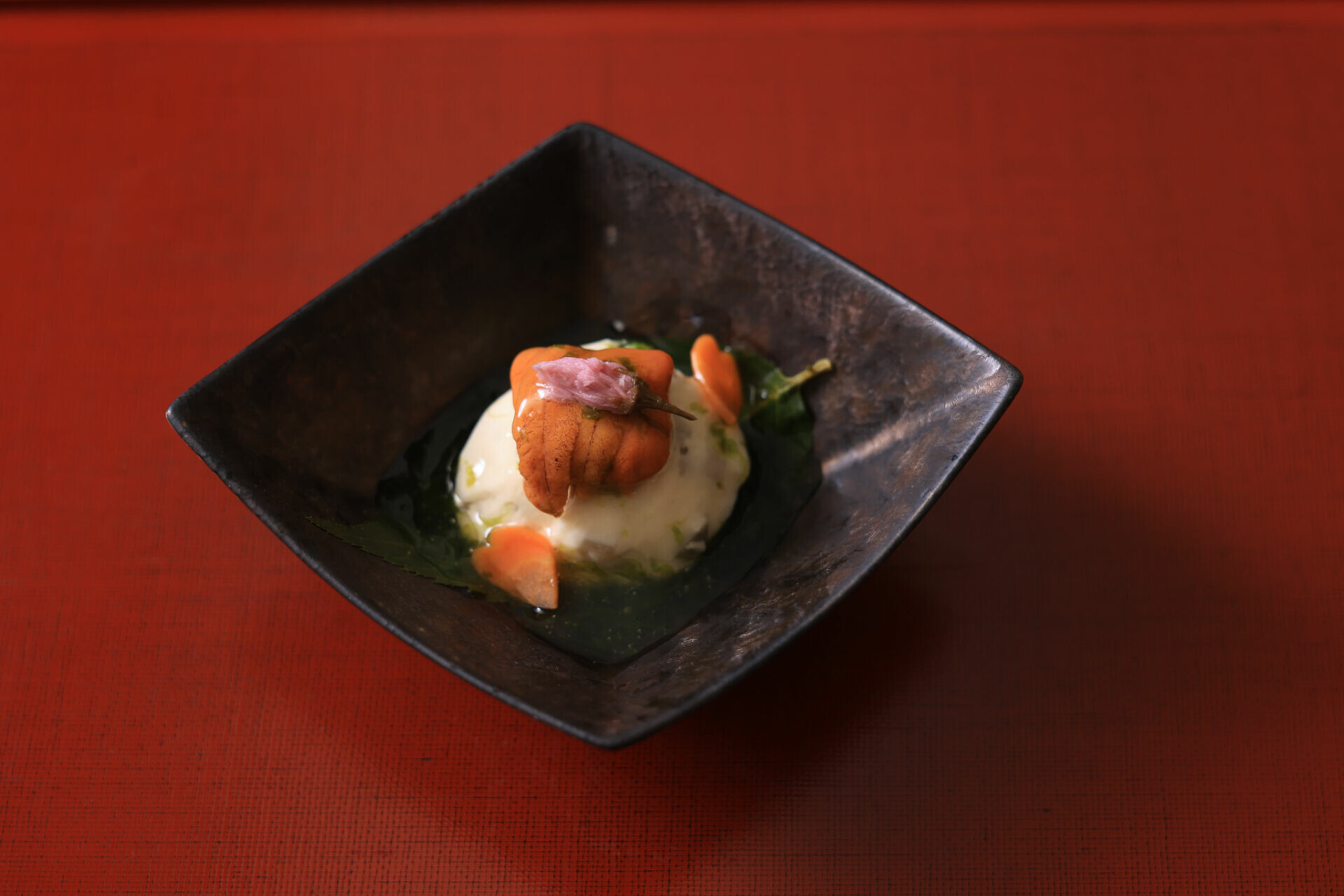 燈燈庵之韻:饗宴由日本主廚廣中新輝親手妝點的「八寸」揭開序幕,將山里旬菜的野趣與柔和春陽的煦色完美定格。隨後的「向付」則展現旬魚鹽熟成的嶄新面貌,悄然現身的「旬肴」演繹海洋薈萃的驚喜,緊接而至的「進肴」以彈牙口感牽動時蔬清脆,勾勒出日式職人春天裡細緻的溫潤線條。
