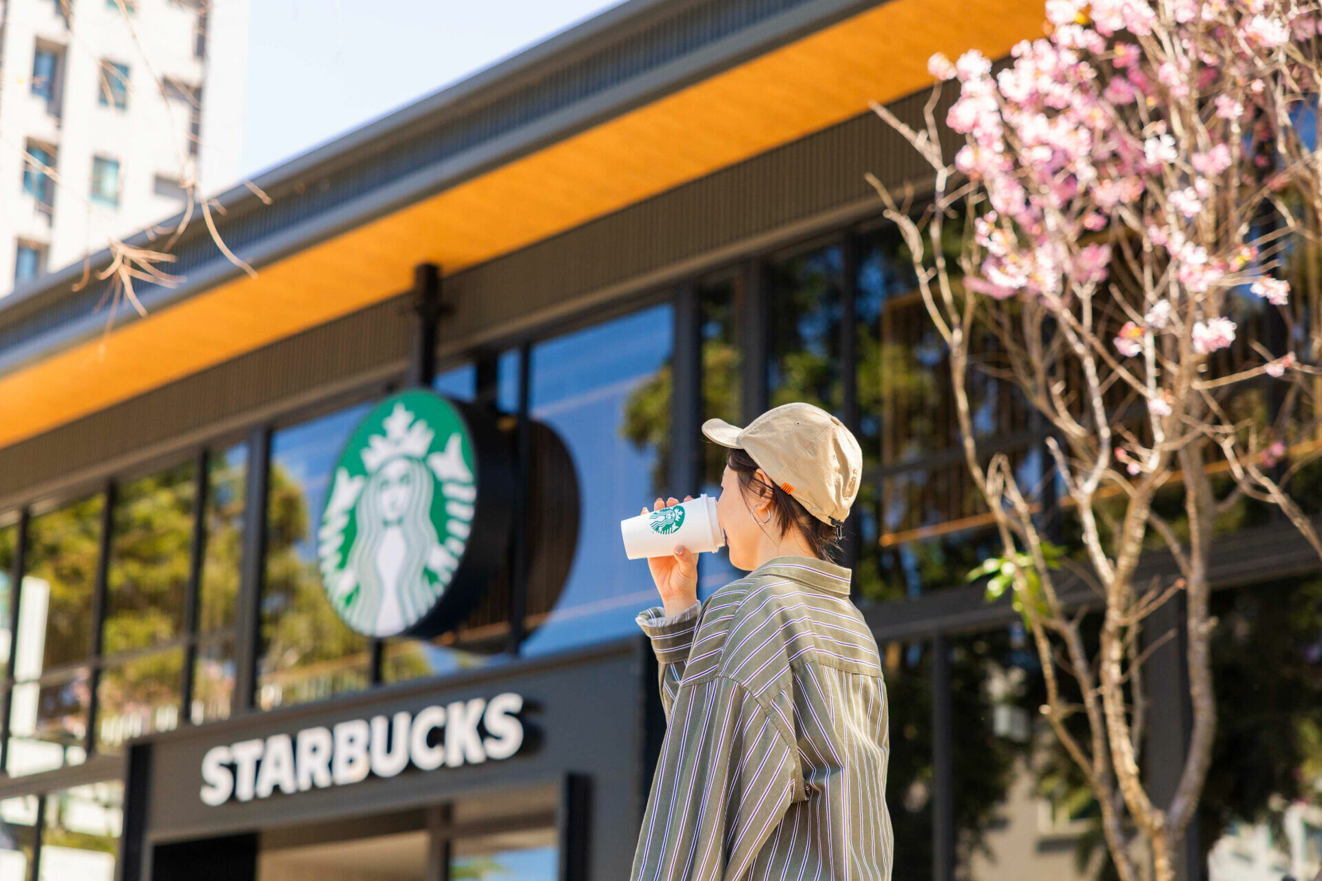 每年 2 至 3 月為櫻花盛開的季節,星巴克推薦多家適合賞櫻的特色門市,邀請顧客在春日漫遊中感受咖啡與花景交織的美好時光。甫開幕的「林口文化北門市」周邊特別種植三株富士櫻,櫻花綻放時為門市增添浪漫春意;位於陽明山上的「草山門市」,則以戶外綠茵草地與美式風格白色木造建築相互映襯,勾勒出悠然宜人的春日景致