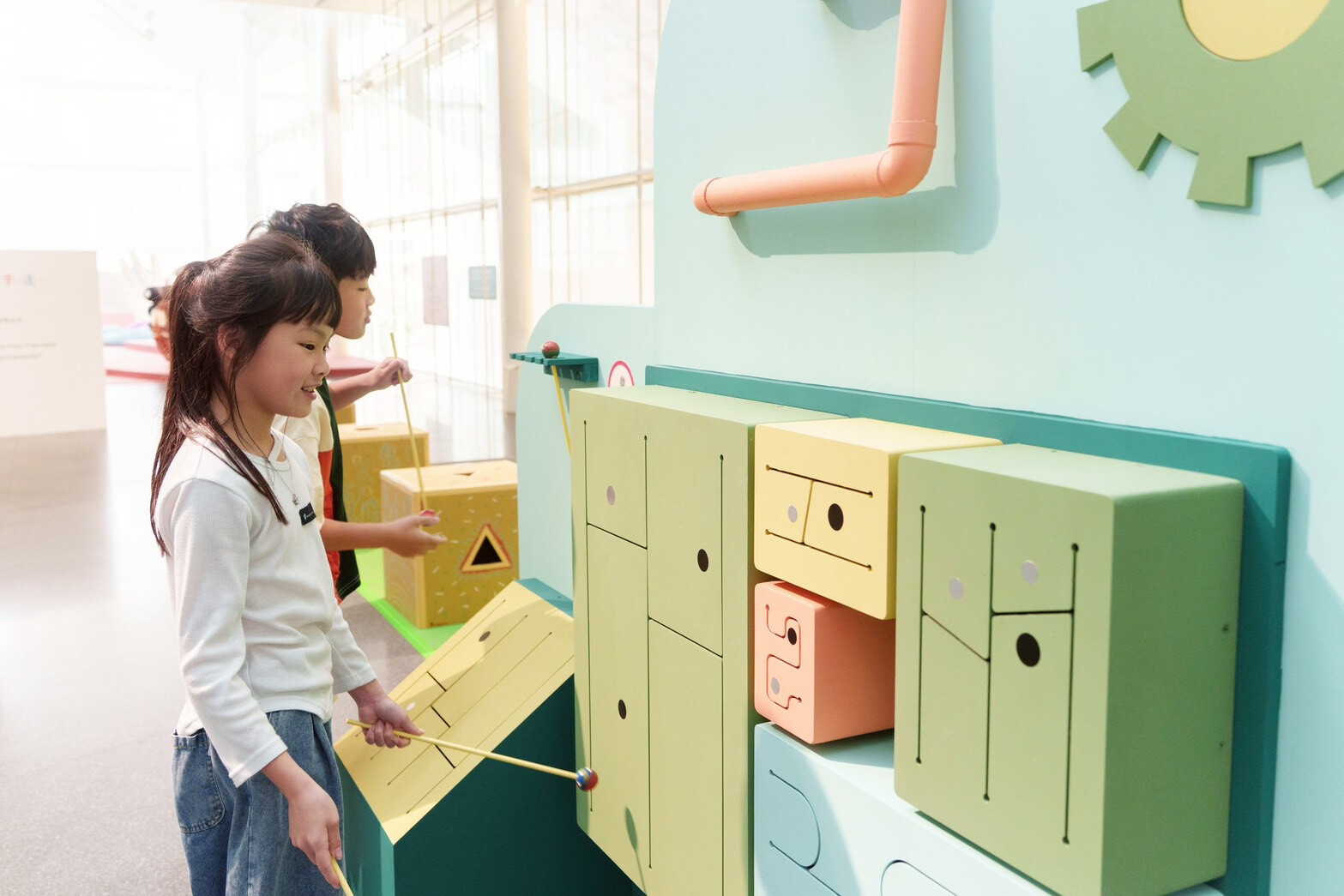 展覽的第一站從「啟程的自由與嘗試」出發,透過致穎與原倫太郎+原游的互動裝置作品,邀請孩子練習掌握移動的自主權。觀眾可以主動選擇路徑與方向,從嘗試與探索開啟自己的旅程記憶。