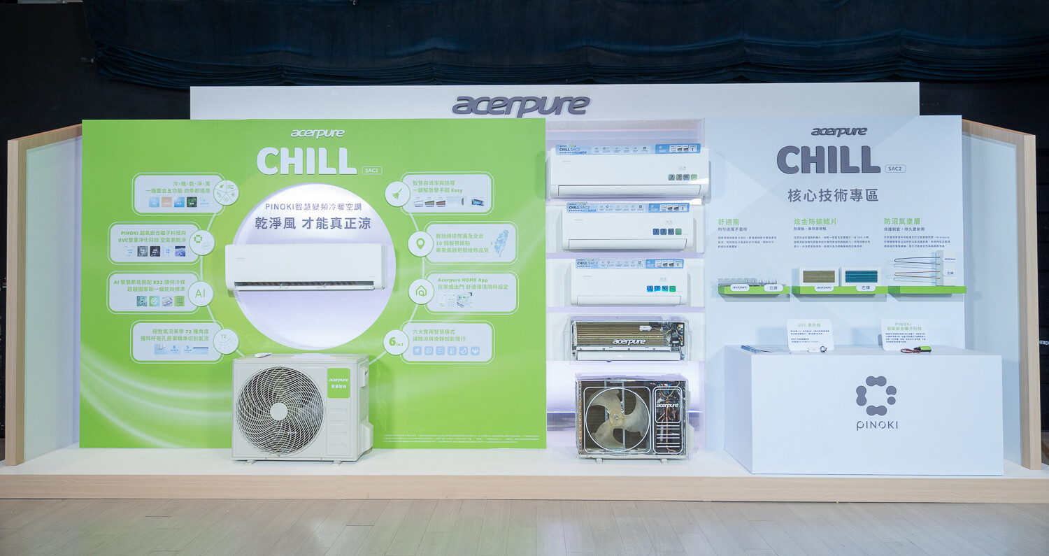 宏碁智新(股票代號7794)旗下家電品牌Acerpure鎖定現代人對健康、高品質生活的追求,正式宣佈進軍大型家電市場,於台灣推出首款「Acerpure CHILL SAC2 PINOKI 智慧變頻冷暖空調」,搭載獨家專利PINOKI 空氣淨化科技,搭配UVC 紫外線與呼吸孔扇葉設計,吹送乾淨舒適微風,打造如置身阿里山森林般清新涼爽的純淨呼吸體驗。