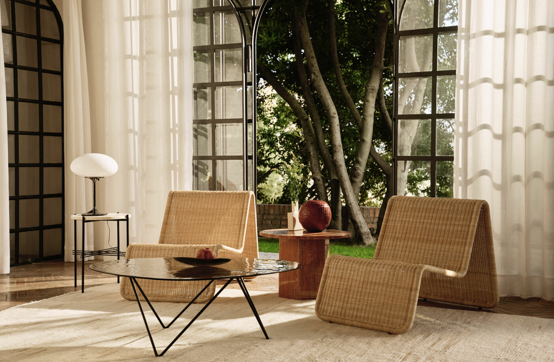 為了這次信義新店開幕,GUBI 特別攜手義大利百年藤編世家 Bonacina 1889,將 1960 年代的經典作品 P3 Lounge Chair 與 P3S Chaise Longue 帶回當代視野。細膩手工藤編與清晰幾何結構交織出輕盈輪廓,既有現代主義的理性,也保留藤材本身的溫潤氣息。無論是適合閱讀與對談的 P3,還是將身體自然引向慵懶躺姿的 P3S,都像是在城市裡為人預留的一小塊慢生活空地。