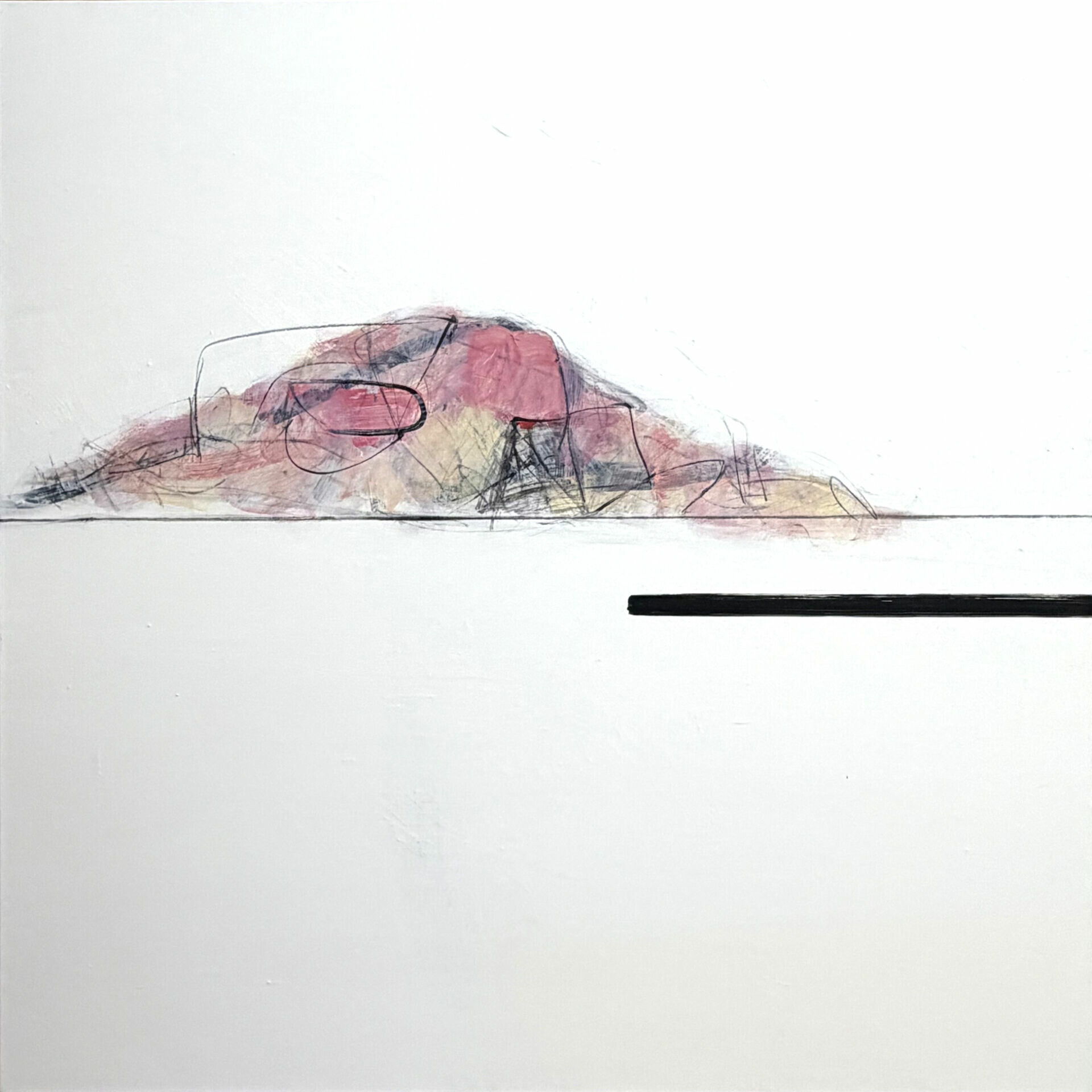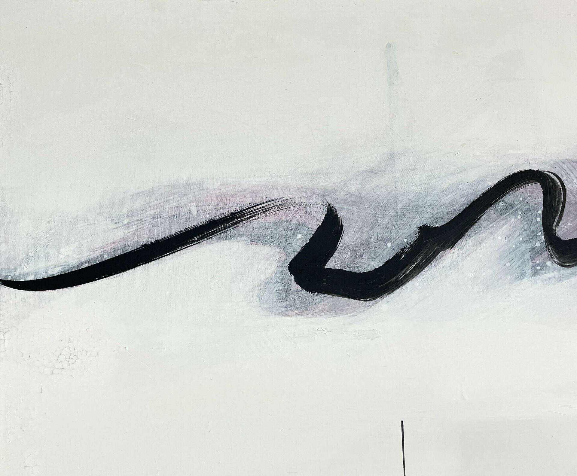 藝術家吳丁賢以極簡的姿態介入畫布,在他的畫前站久一點,會逐漸感受到那片留白並不是空無。他不描繪形象,卻在無形之中勾勒出生命最真實的節奏,有時輕盈,有時沉靜得像一個長長的停頓。色彩是他的底色,也是他的心境。有時是粉金與玫瑰的溫柔,有時是藍紫與炭黑的深沉,在不同的畫面裡訴說著不同的心境。