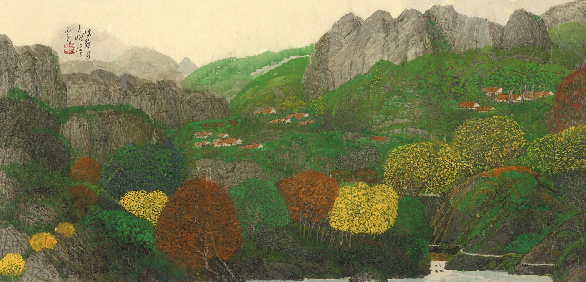 余承堯_〈山水〉_水墨設色紙本_55 × 116 cm_中晚期