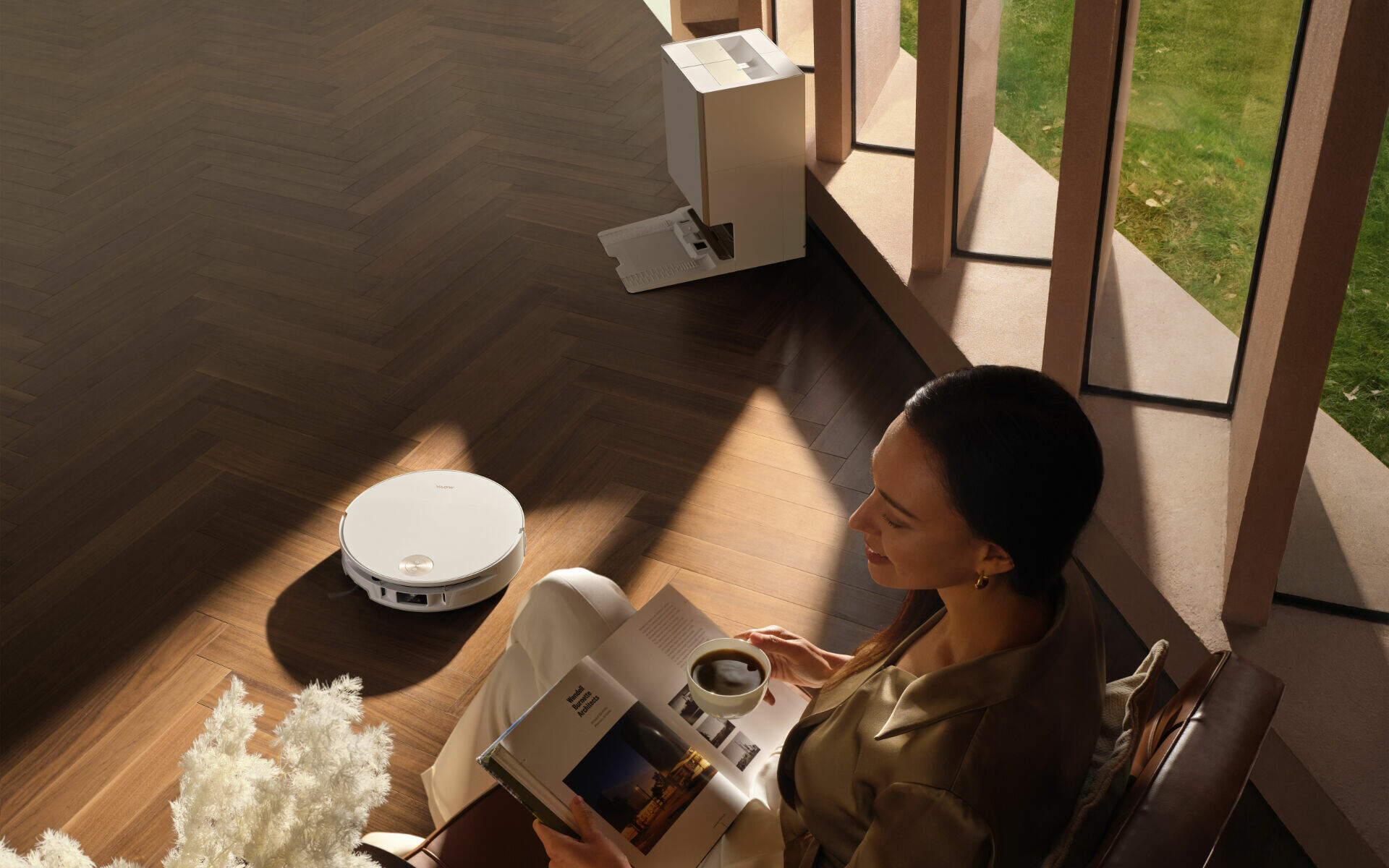 在拖地體驗上,MOBIUS 60 進一步導入仿人手清潔系統,透過最高 260rpm 高速旋轉與 12N 下壓力道,搭配 360° 全向浮動拖布盤,能隨地面高低自動貼合,有效提升頑固污漬與縫隙清潔能力,使拖地效果更接近人工刷洗的細緻程度。此外,產品亦整合完整自清潔機制,透過 100°C 高溫清洗與 UV 抗菌技術,除菌率達 99.99%,有效降低細菌殘留,並結合自動補水、自動添加清潔液及木板保養液、自動集塵與熱風烘乾系統,大幅減少使用者的維護負擔。