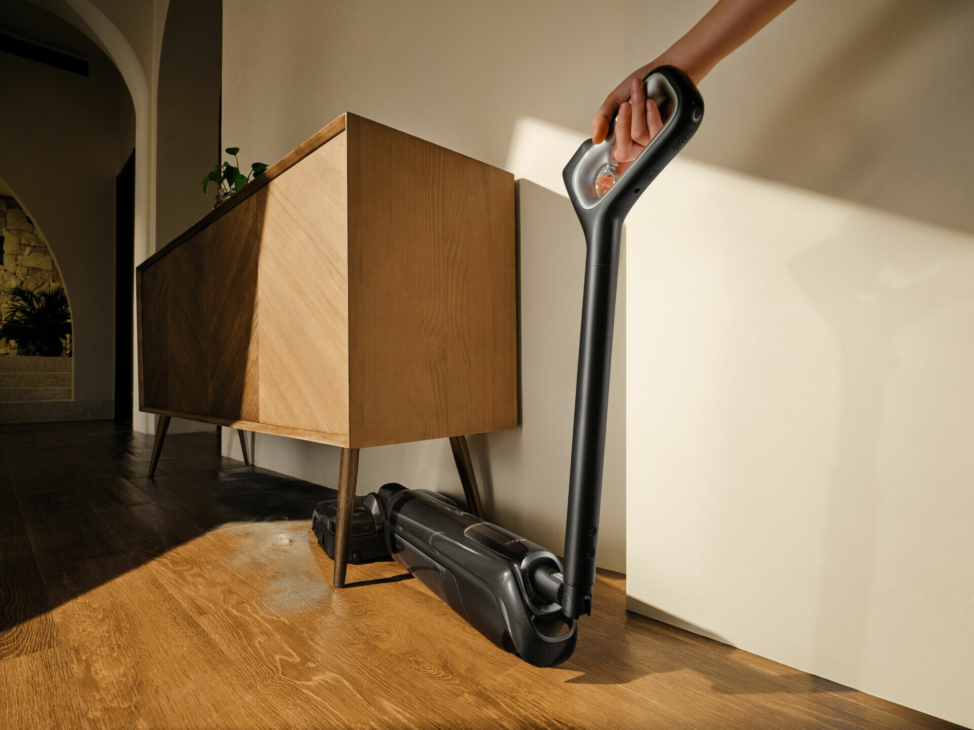 而 M50 Ultra 則聚焦「輕鬆不費力」的清潔體驗,創新可摺疊手把設計,機身平躺180°深入清潔低矮空間時,手把還可折疊90°,大幅減少彎腰負擔,重新定義日常清潔的舒適度;搭配智慧雙向助力系統,無論前推或後拉皆能順暢滑行。同時具備最高 22,000Pa 吸力與滾刷即時清洗機制,有效去除頑固污漬,還可生成電解水達 99.99% 抑菌效果。進一步搭載 EdgeCoverage™ AI 技術,主動貼近牆角與邊緣,實現近乎零縫隙的無死角清潔;結合智慧髒污感測與清潔液自動添加系統,能依髒污程度精準調整水量、吸力與清潔劑比例,讓每一次清潔更高效、省時且省力。